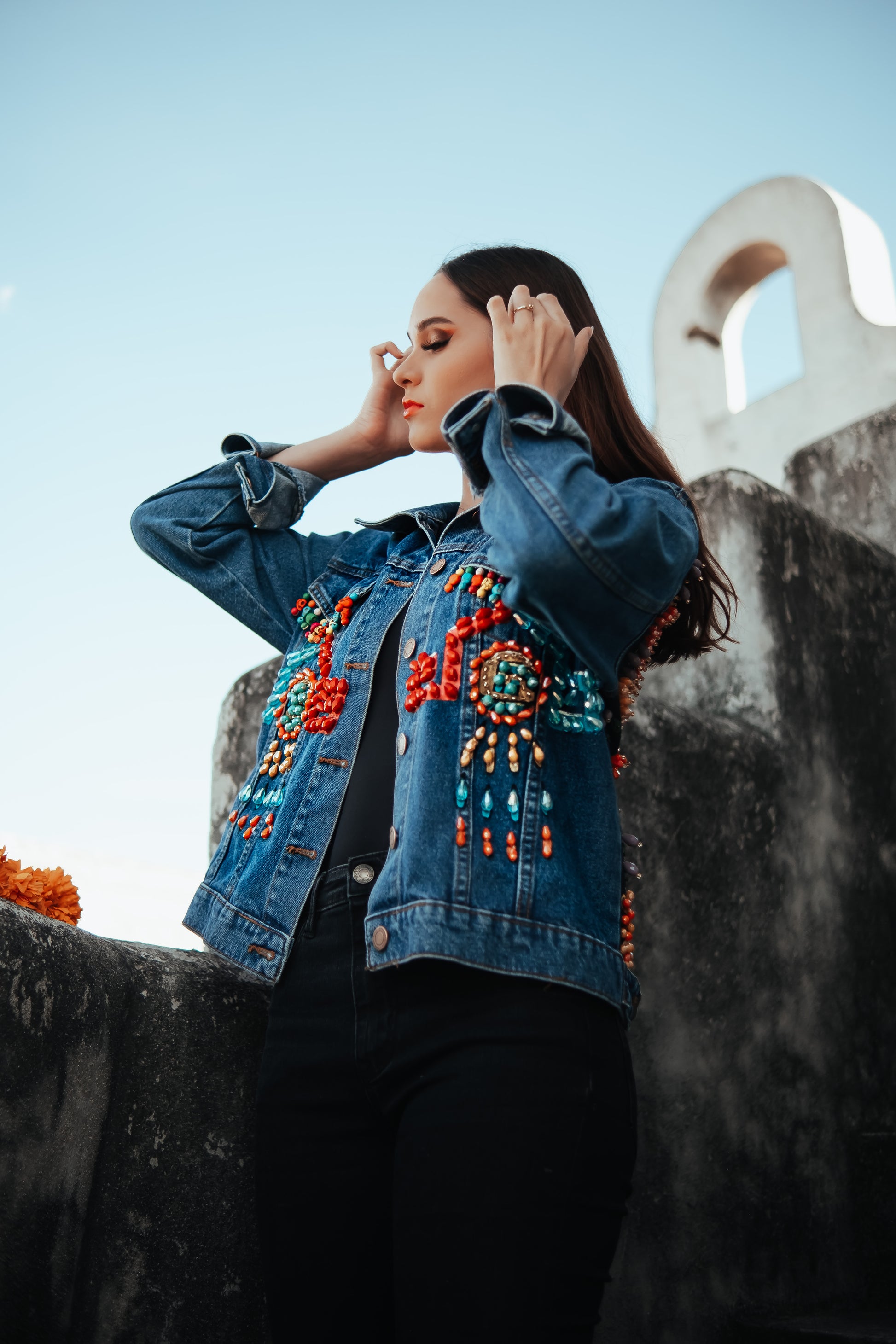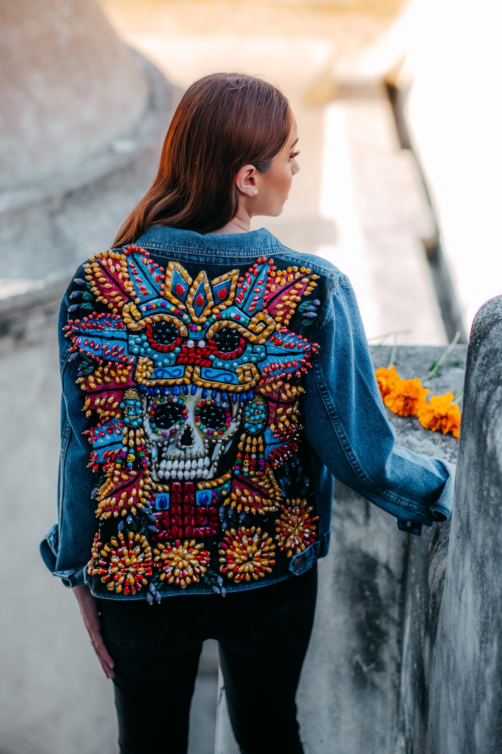 CHAMARRA PINTADA Y BORDADA A MANO CON PUROS CRISTALES , COLECCION EXCLUSIVAMENTE BAJO PEDIDO.